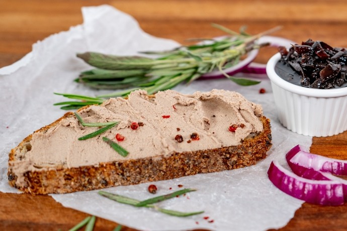 Classic french recipe made with chicken livers, onions, garlic, butter and a good swig of Brandy.