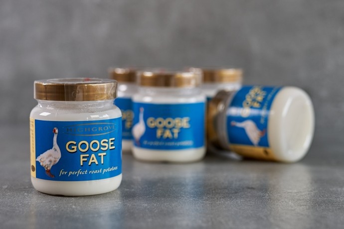 Goose Fat from British Free range Geese, supplied by Highgrove fine foods, Oxfordshire.