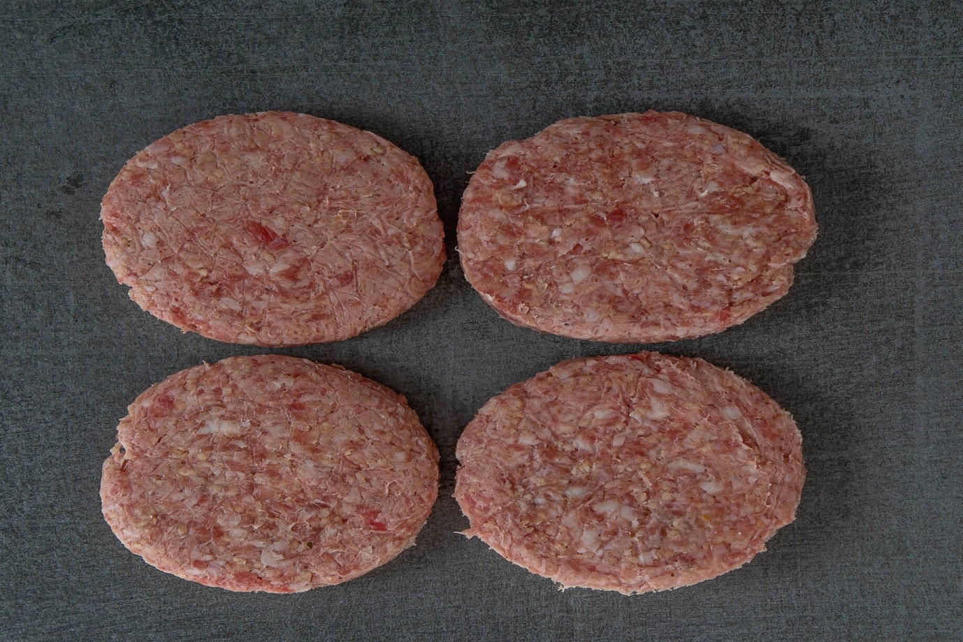4oz Pork burger made to the same recipe as our award winning Pork & Apple sausages, using outdoor reared pork from Tim Allen. Heavy apple flavours, slightly sweet & herby. (Sold frozen in packs of four.) PLEASE NOTE THIS PRODUCT IS SOLD FROZEN